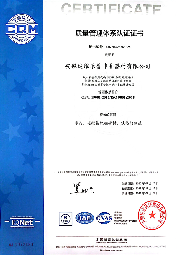 為響應(yīng)國家標(biāo)準(zhǔn)化發(fā)展綱要,推動高質(zhì)量發(fā)展,建設(shè)社會主義現(xiàn)代化國家。 安徽迪維樂普非晶器材有限公司、非晶合金電力互感器材料研究中心;為促進(jìn)標(biāo) 準(zhǔn)化發(fā)展、提升標(biāo)準(zhǔn)化水平;實現(xiàn)企業(yè)有序發(fā)展、有規(guī)可循;產(chǎn)品質(zhì)量有據(jù)可依、 方便客戶甄別選用,特制定本企業(yè)質(zhì)量標(biāo)準(zhǔn)。